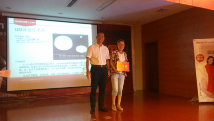 結(jié)束語:會(huì)議期間穿插頒獎(jiǎng)及抽獎(jiǎng)環(huán)節(jié),各獎(jiǎng)項(xiàng)逐一揭曉,宏光照明江蘇地區(qū)核心經(jīng)銷商多位獲獎(jiǎng),以此來激勵(lì)各個(gè)經(jīng)銷商2014年再創(chuàng)佳績(jī)。在激情向上的音樂中,宏光照明江蘇核心經(jīng)銷商會(huì)議取得了圓滿成功!